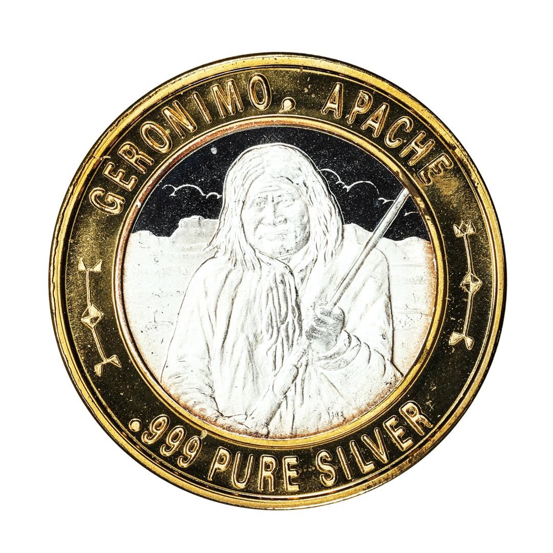 One .999 Silver Geronimo Apache $10 Casino Limited Native American Series Gaming Token.
