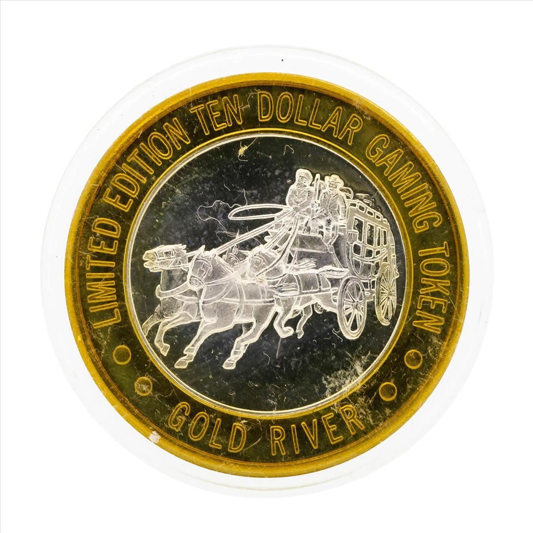 One .999 Silver Gold River Gambling Hall and Resort $10 Casino Gaming Token Limited Edition.