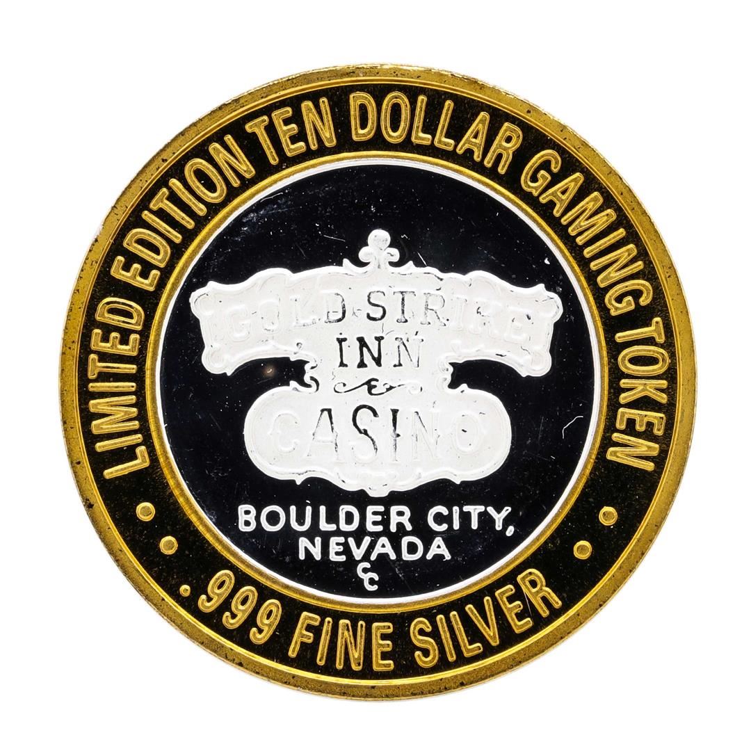 One .999 Silver Gold Strike Inn Boulder City, Nevada $10 Limited Edition Casino Gaming Token.