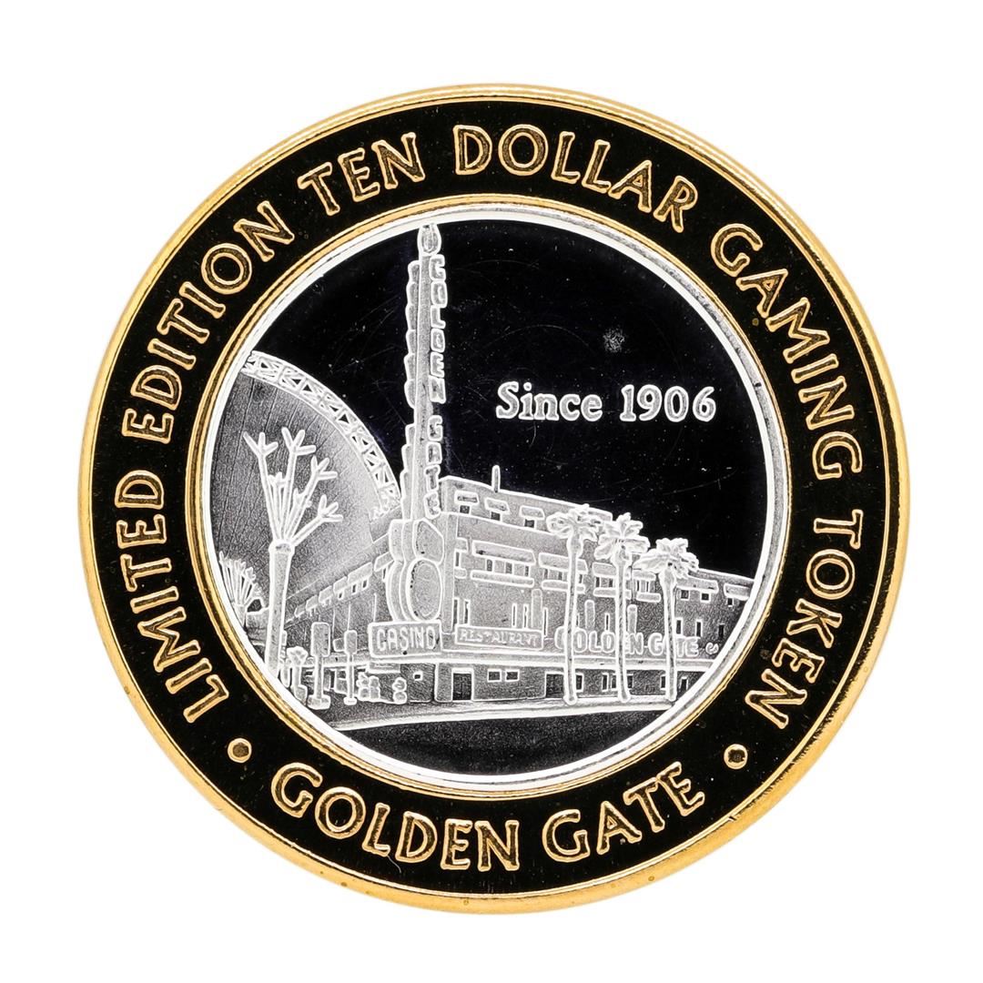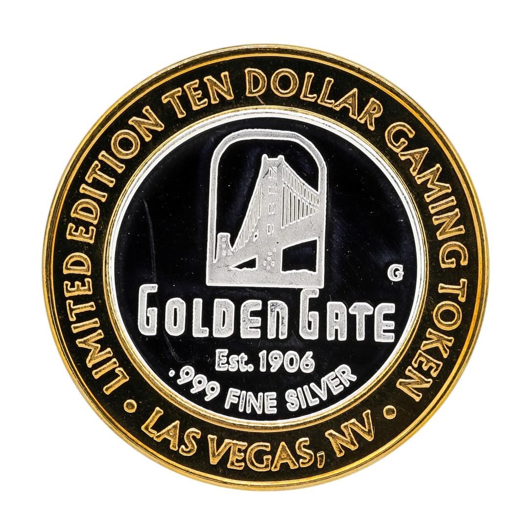 One .999 Silver Golden Gate Las Vegas, NV $10 Casino Limited Edition Gaming Token.