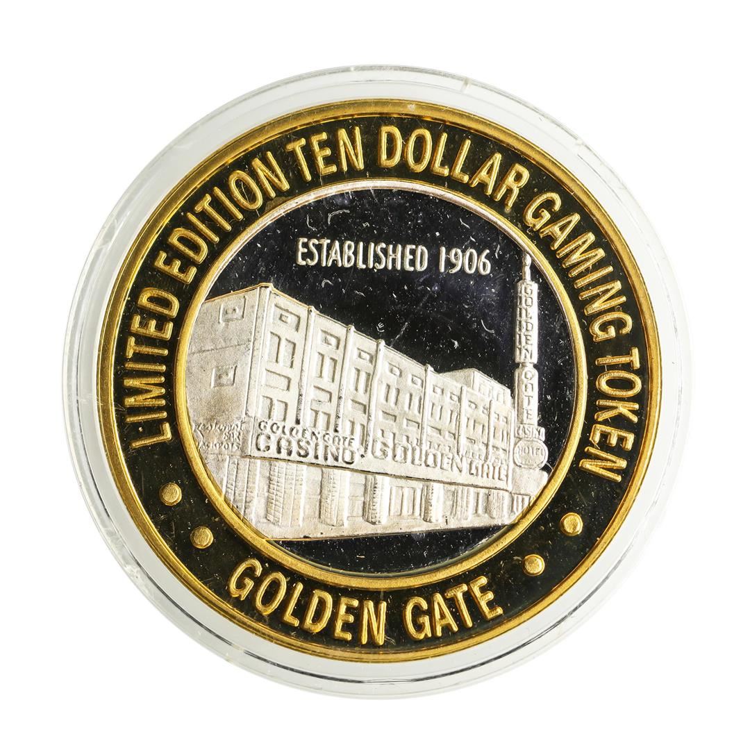 One .999 Silver Golden Gate Las Vegas, NV $10 Casino Limited Edition Gaming Token.
