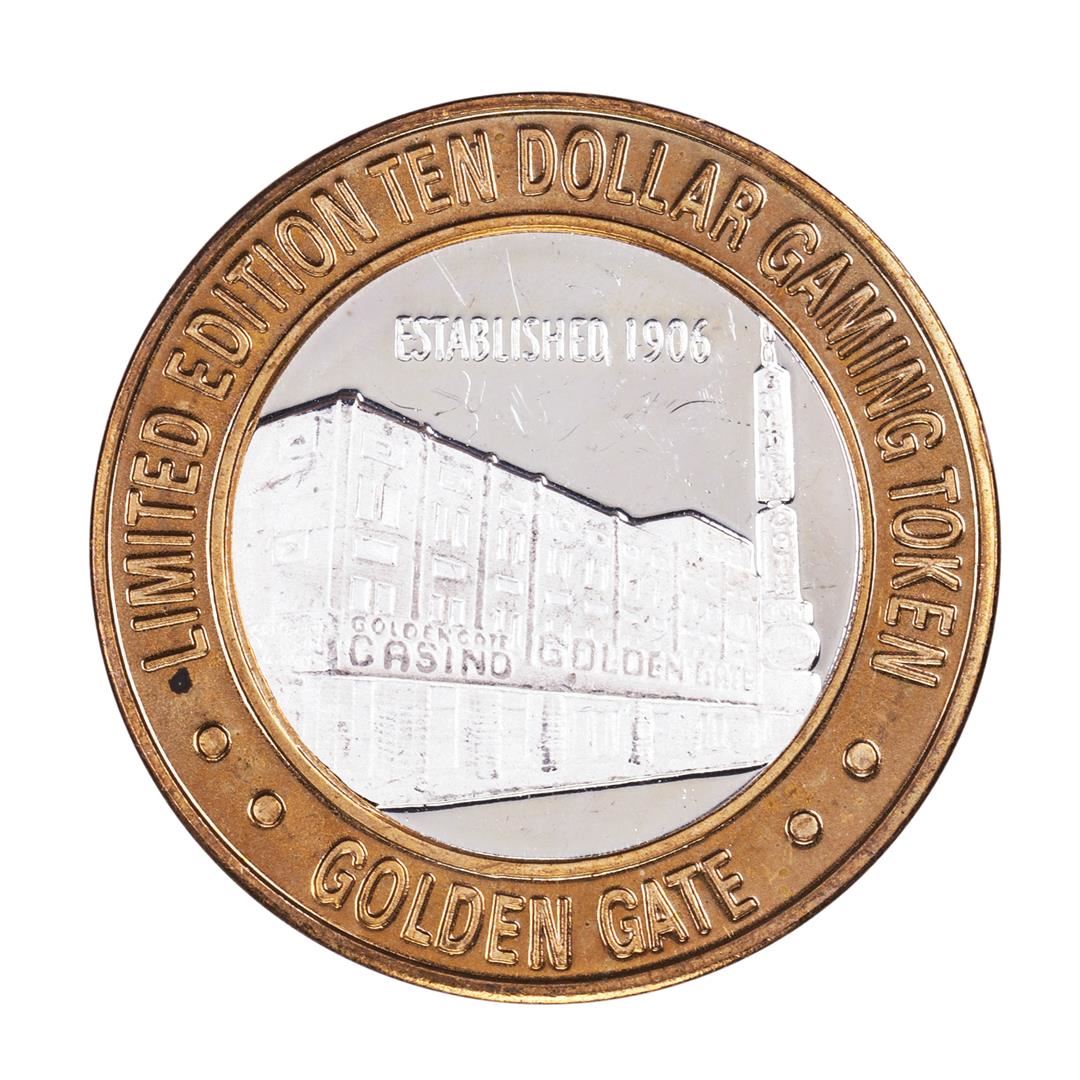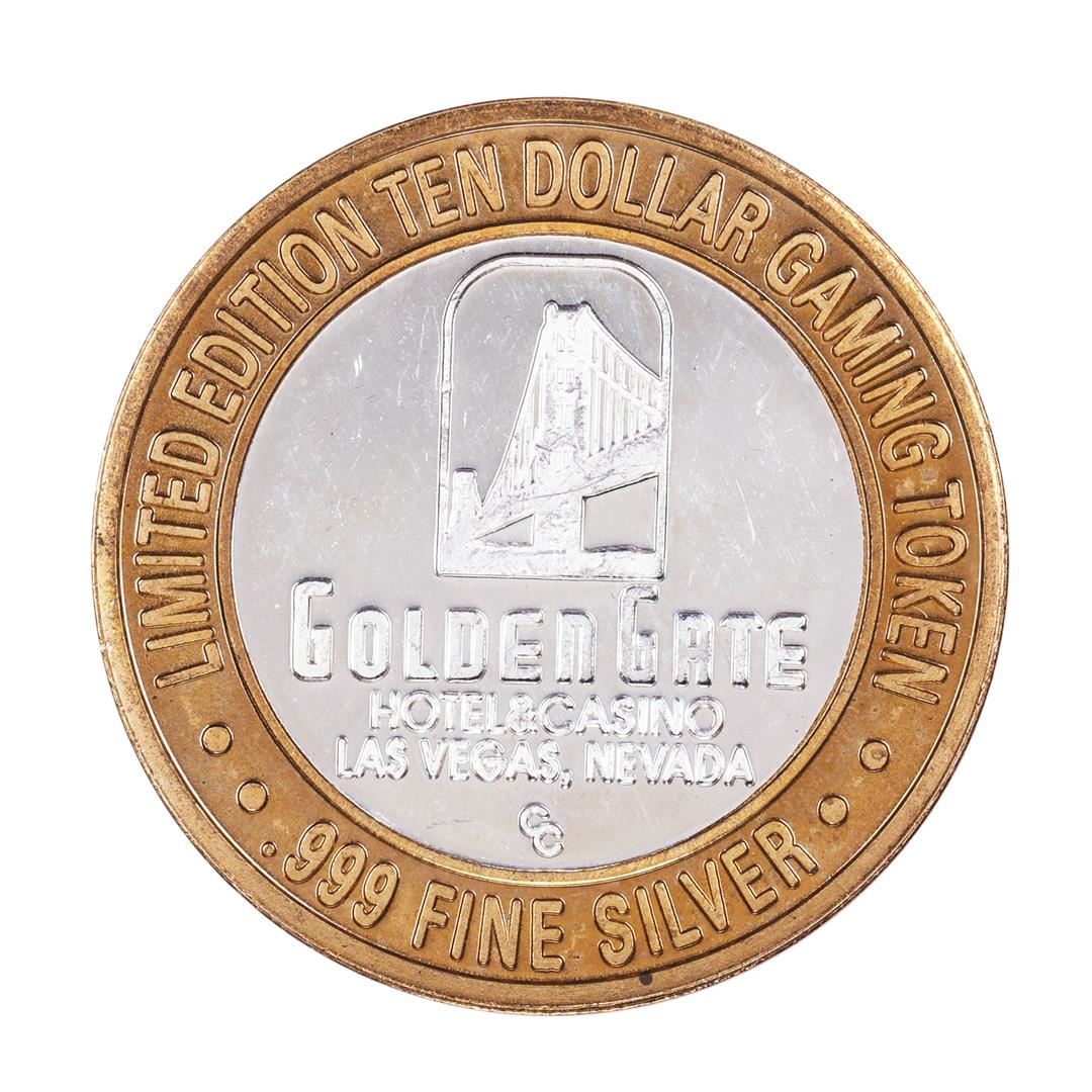 One .999 Silver Golden Gate Las Vegas, NV $10 Casino Limited Edition Gaming Token.