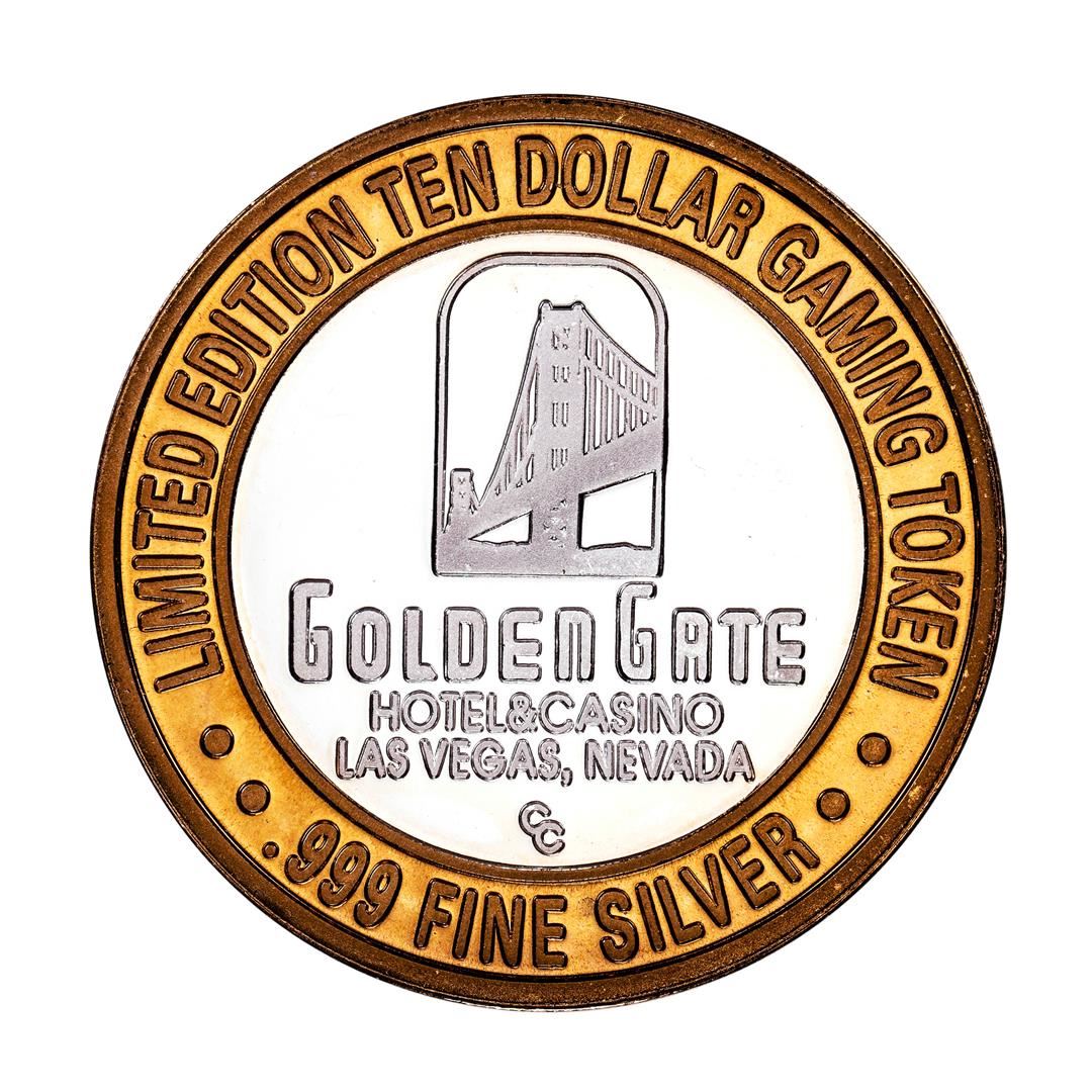 One .999 Silver Golden Gate Las Vegas, NV $10 Casino Limited Edition Gaming Token.