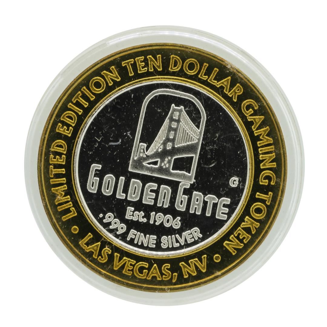 One .999 Silver Golden Gate Las Vegas, Nevada $10 Casino Limited Edition Gaming Token.