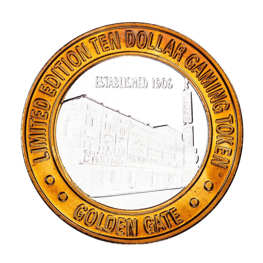 One .999 Silver Golden Gate Las Vegas, Nevada $10 Casino Limited Edition Gaming Token.