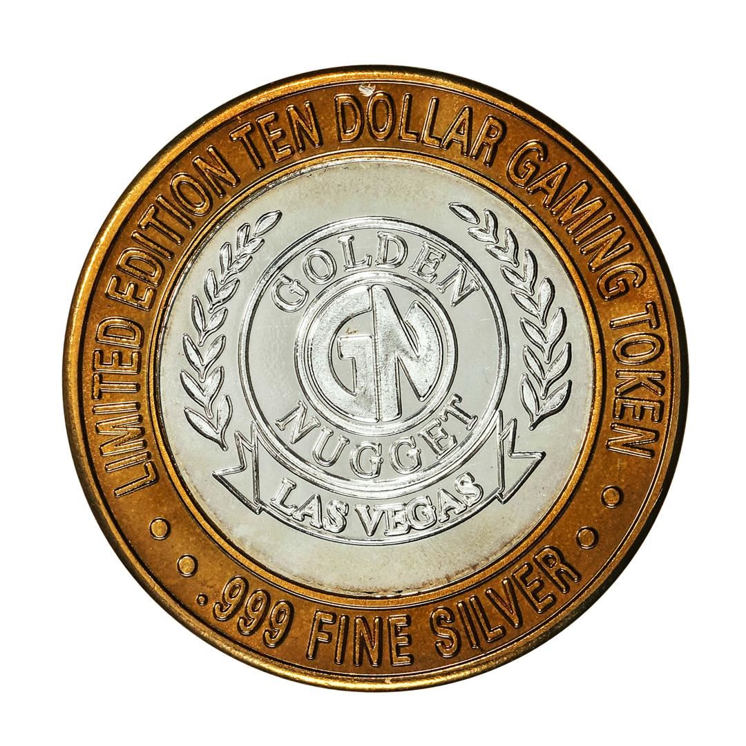 One .999 Silver Golden Nugget Las Vegas $10 Casino Limited Edition Gaming Token.