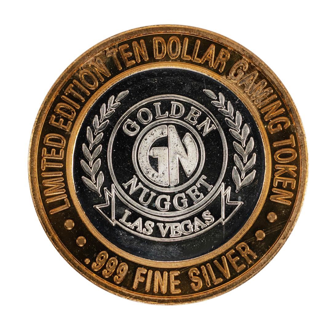 One .999 Silver Golden Nugget Las Vegas $10 Limited Edition Casino Gaming Token.