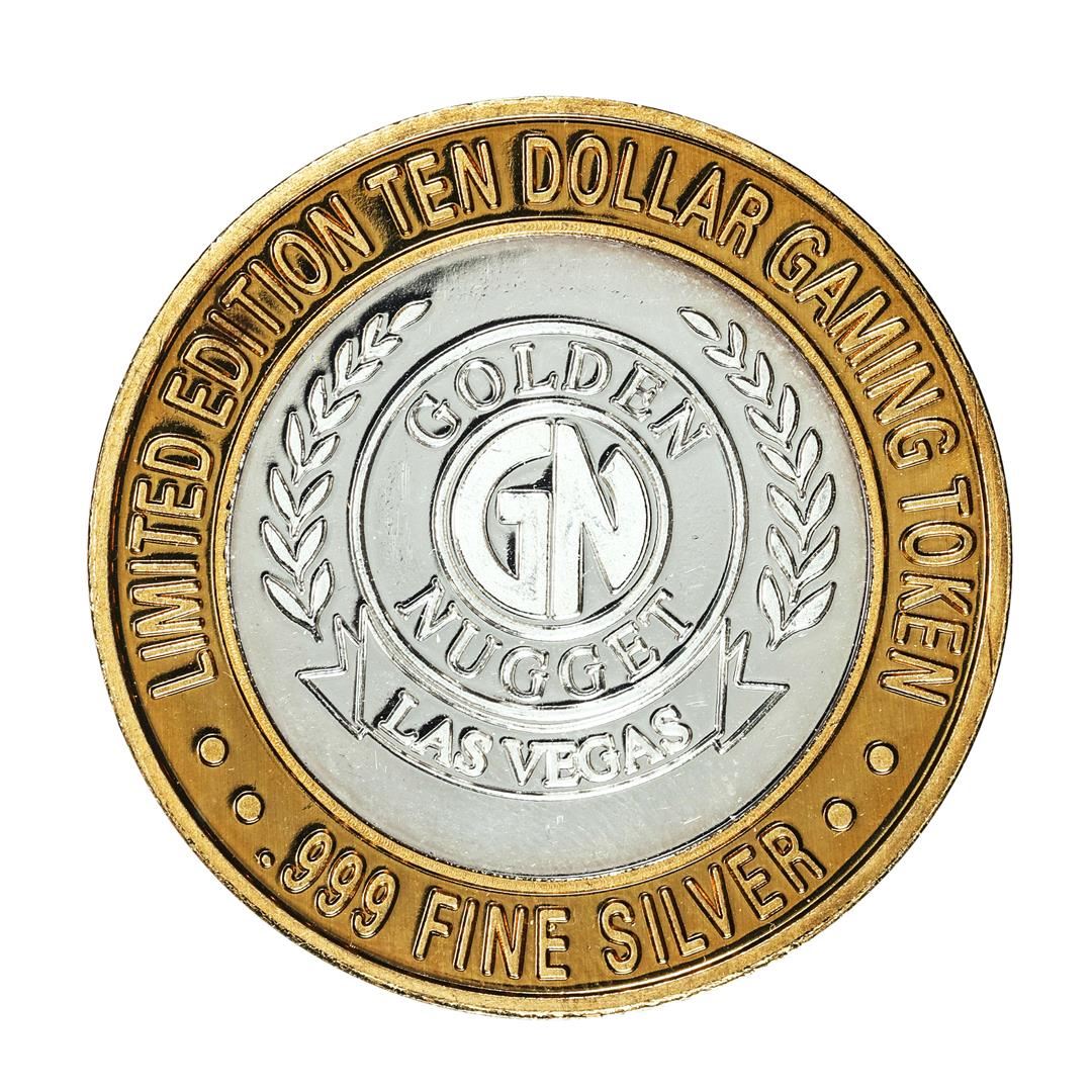 One .999 Silver Golden Nugget Las Vegas $10 Limited Edition Casino Gaming Token.