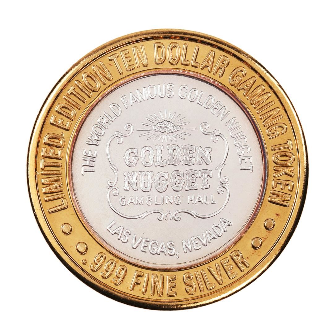 One .999 Silver Golden Nugget Las Vegas, Nevada $10 Limited Edition Casino Gaming Token.