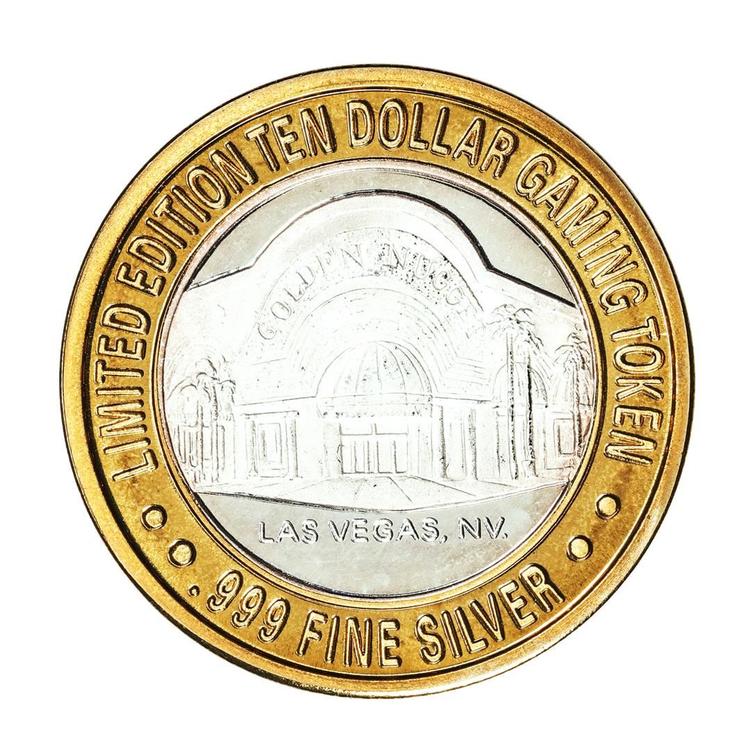 One .999 Silver Golden Nugget Las Vegas, Nevada $10 Limited Edition Casino Gaming Token.