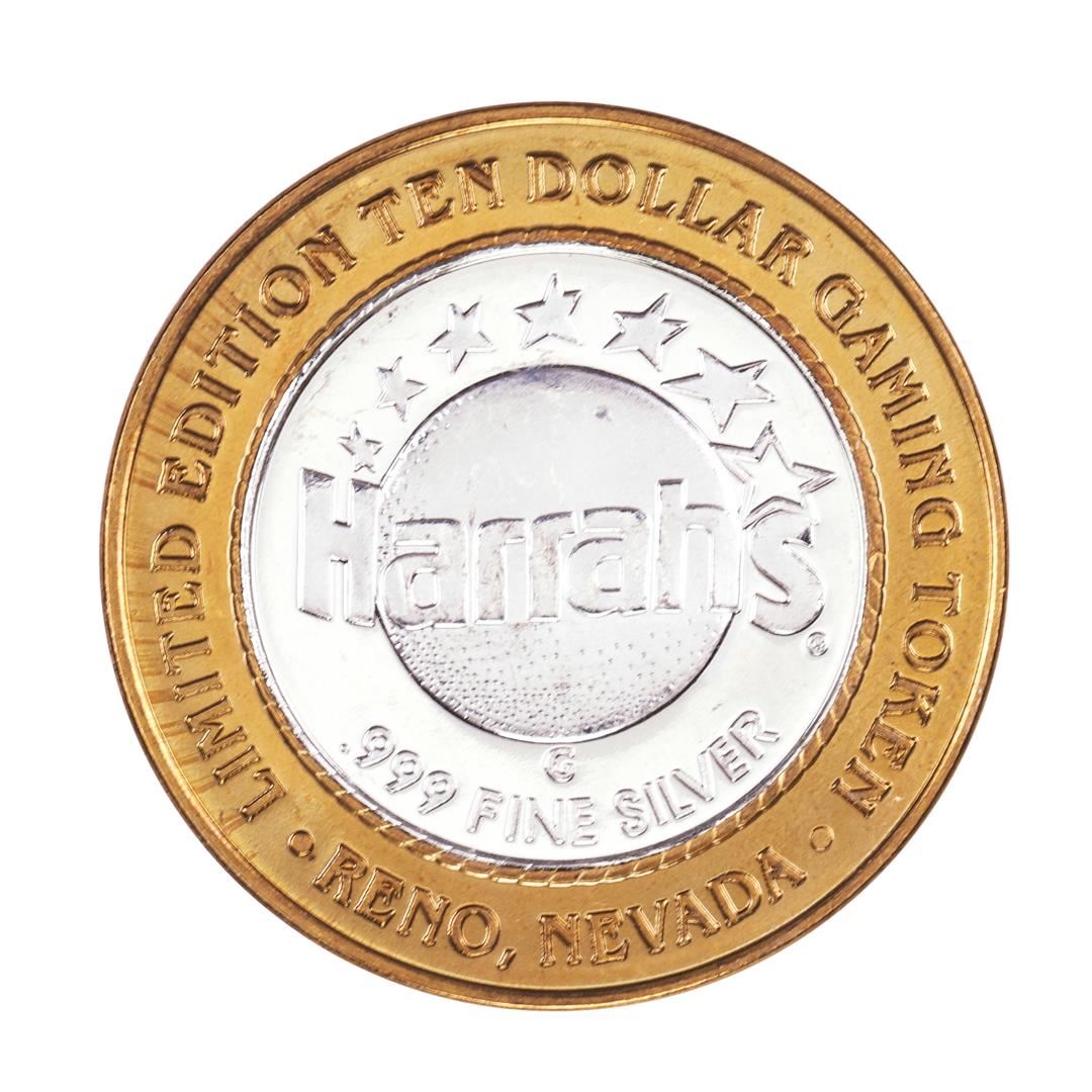 One .999 Silver Harrah's Casino Reno Nevada $10 Casino Limited Edition Gaming Token.