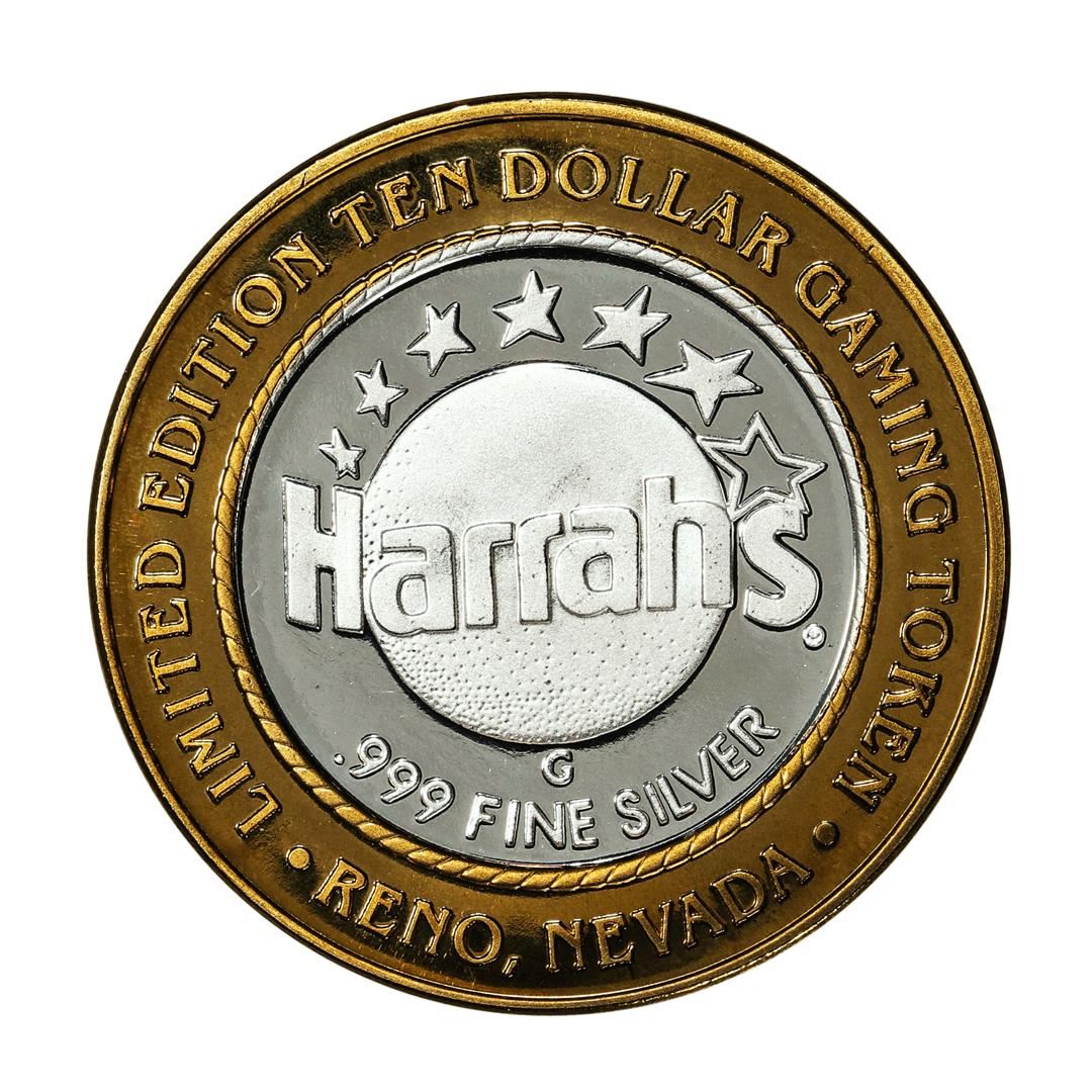 One .999 Silver Harrah's Reno, Nevada $10 Casino Limited Edition Gaming Token.