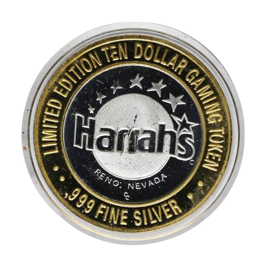 One .999 Silver Harrahs Casino Reno Nevada $10 Casino Limited Edition Gaming Token.
