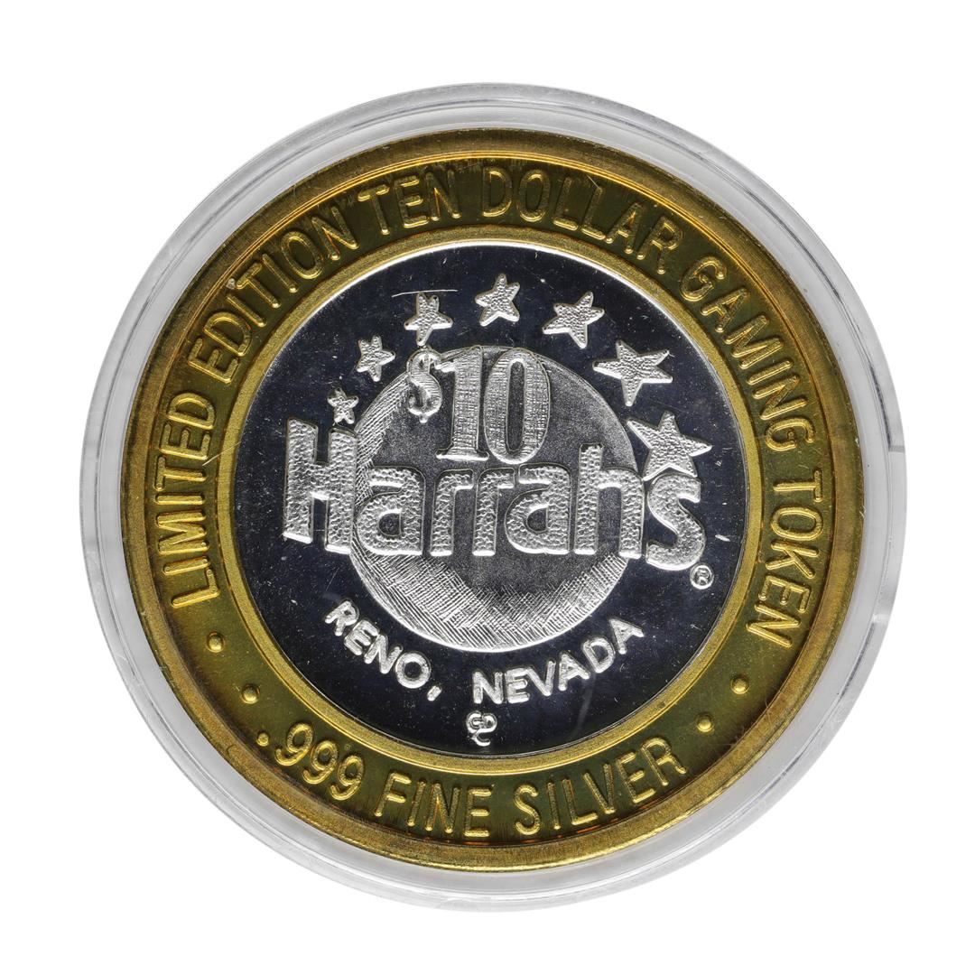 One .999 Silver Harrahs Casino Reno Nevada $10 Casino Limited Edition Gaming Token.