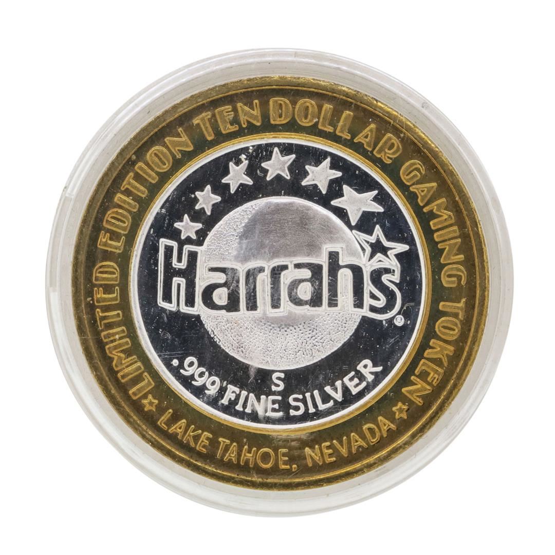 One .999 Silver Harrahs Lake Tahoe, Nevada $10 Casino Limited Edition Gaming Token.