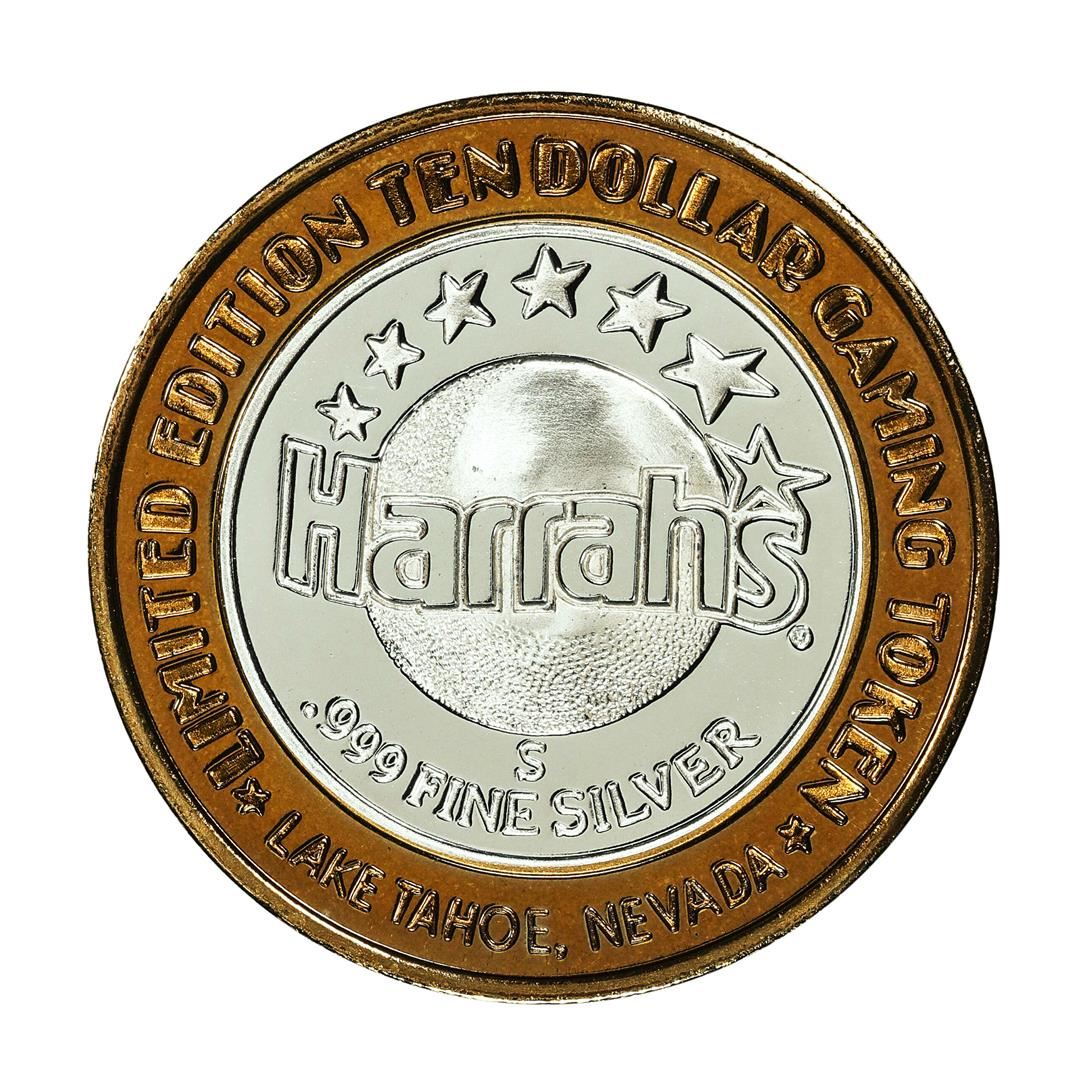 One .999 Silver Harrahs Lake Tahoe, Nevada $10 Casino Limited Edition Gaming Token.