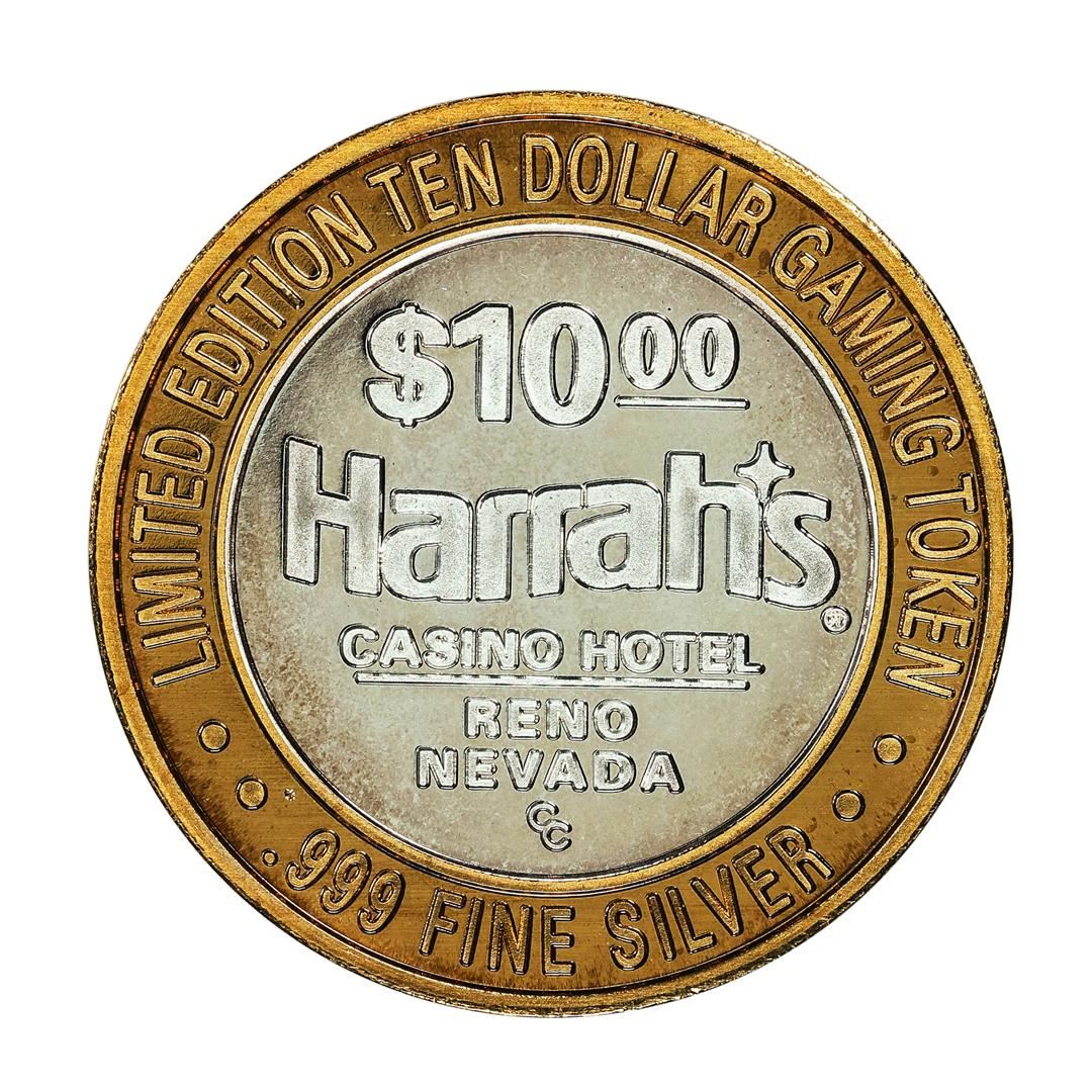 One .999 Silver Harrahs Reno, Nevada $10 Casino Limited Edition Gaming Token.