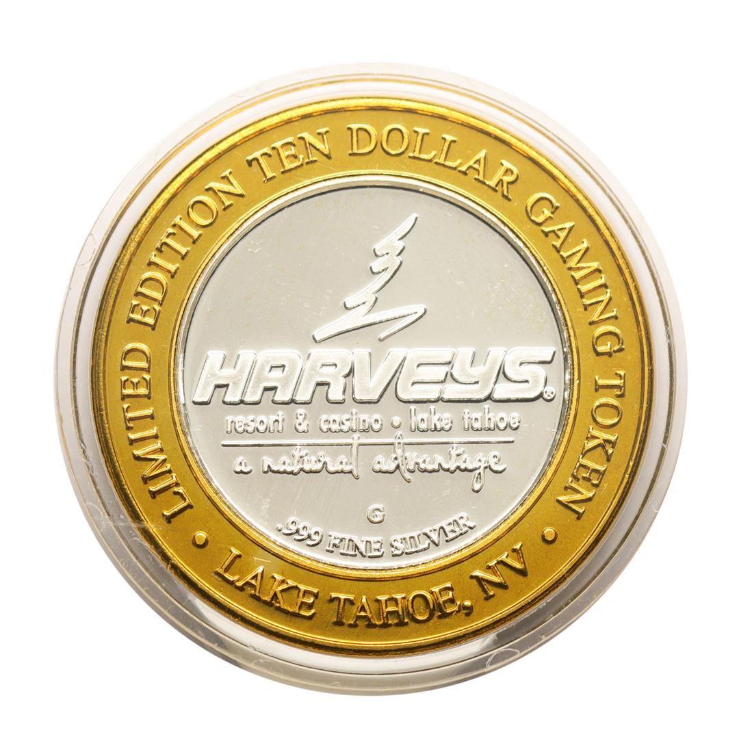 .999 Silver Harvey's Lake Tahoe, Nevada $10 Casino Gaming Token Limited Edition