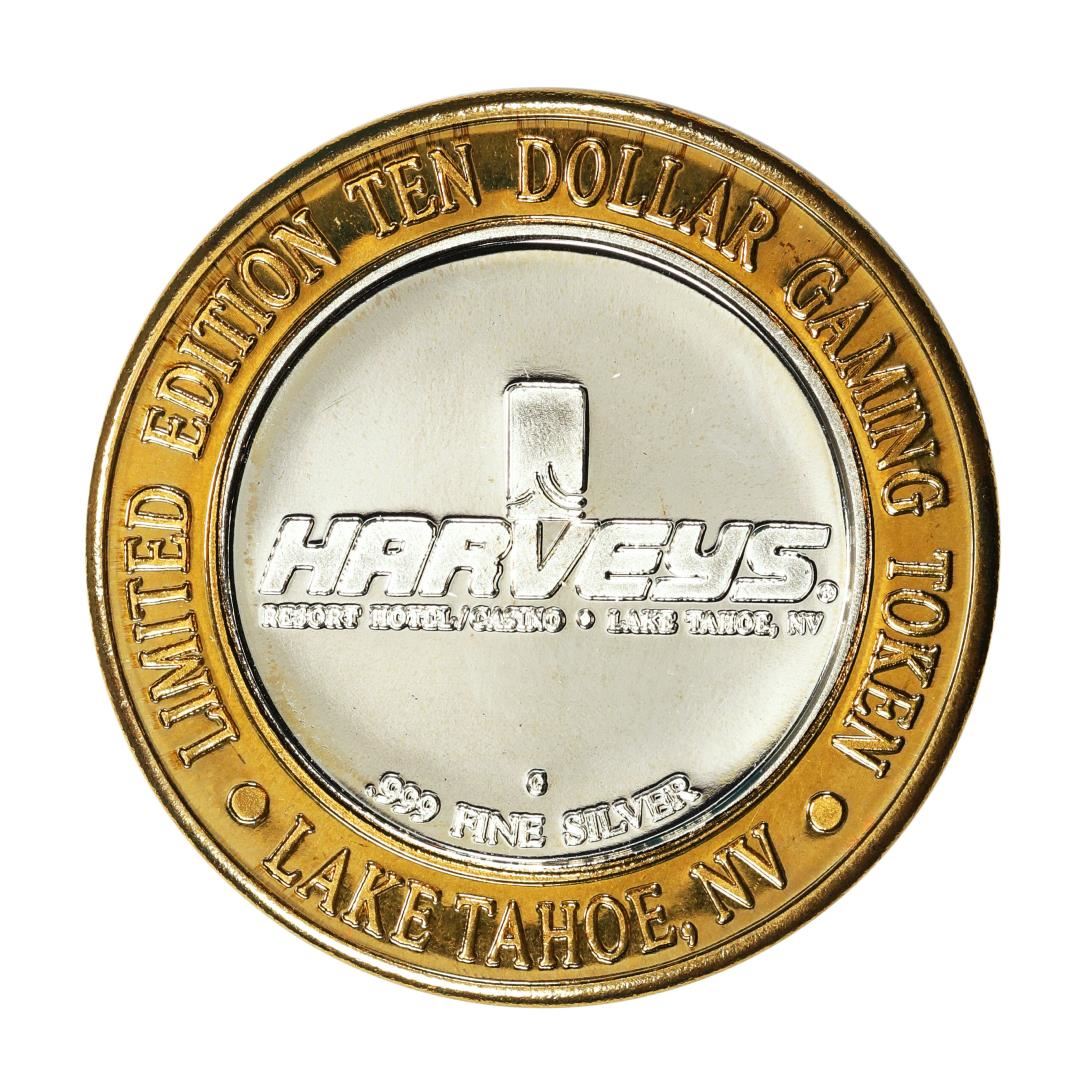 .999 Silver Harvey's Lake Tahoe, Nevada $10 Casino Gaming Token Limited Edition
