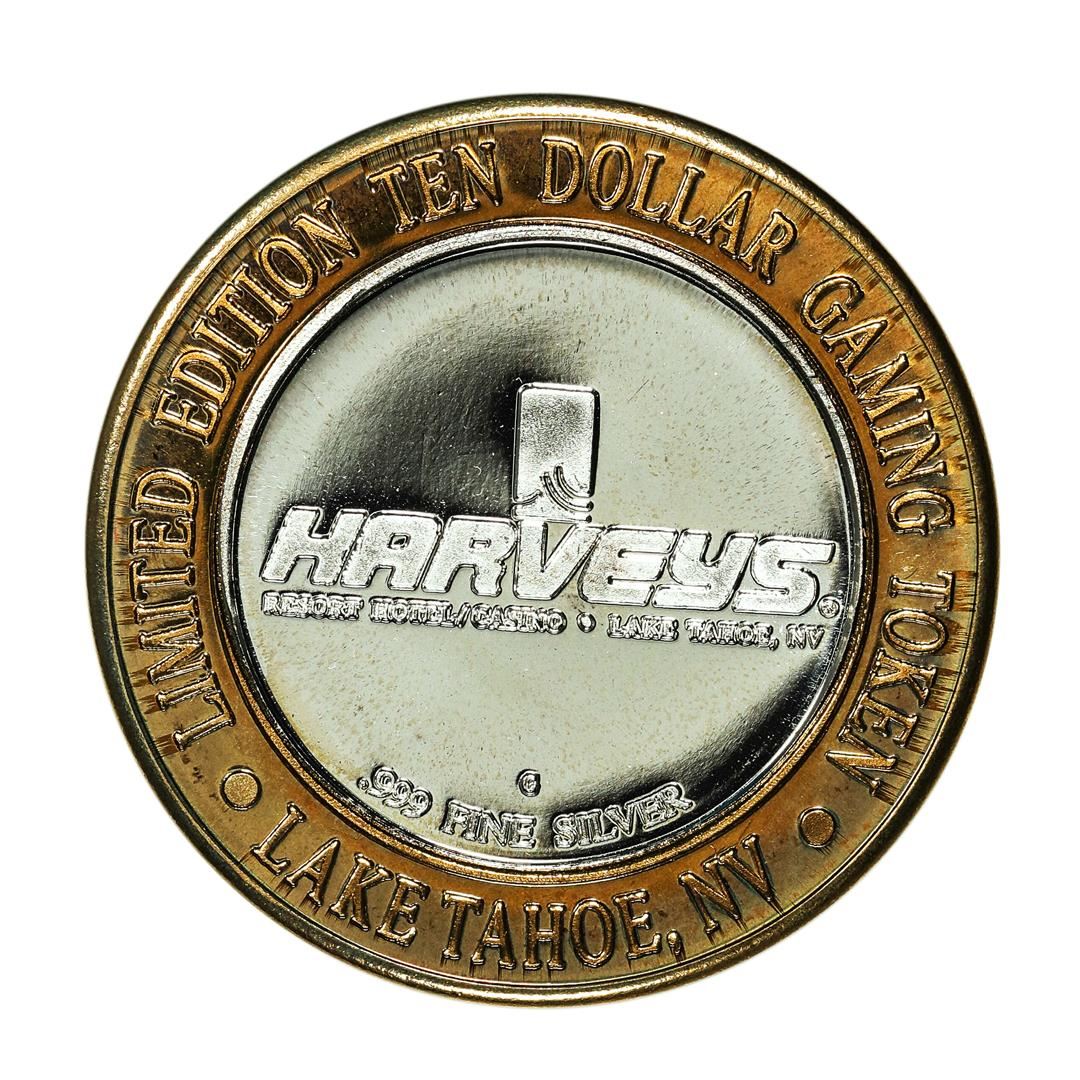 One .999 Silver Harvey's Lake Tahoe, Nevada $10 Casino Limited Edition Gaming Token.