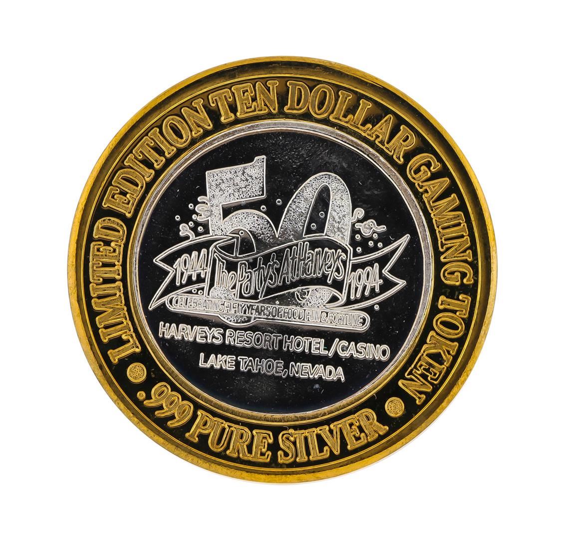.999 Silver Harveys Lake Tahoe, Nevada $10 Casino Gaming Token Limited Edition