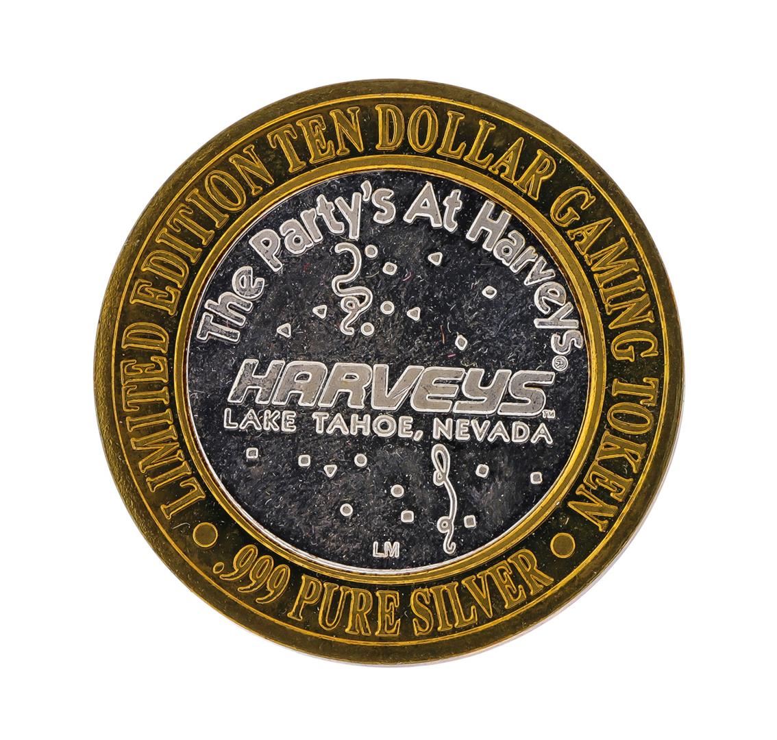 .999 Silver Harveys Lake Tahoe, Nevada $10 Casino Gaming Token Limited Edition