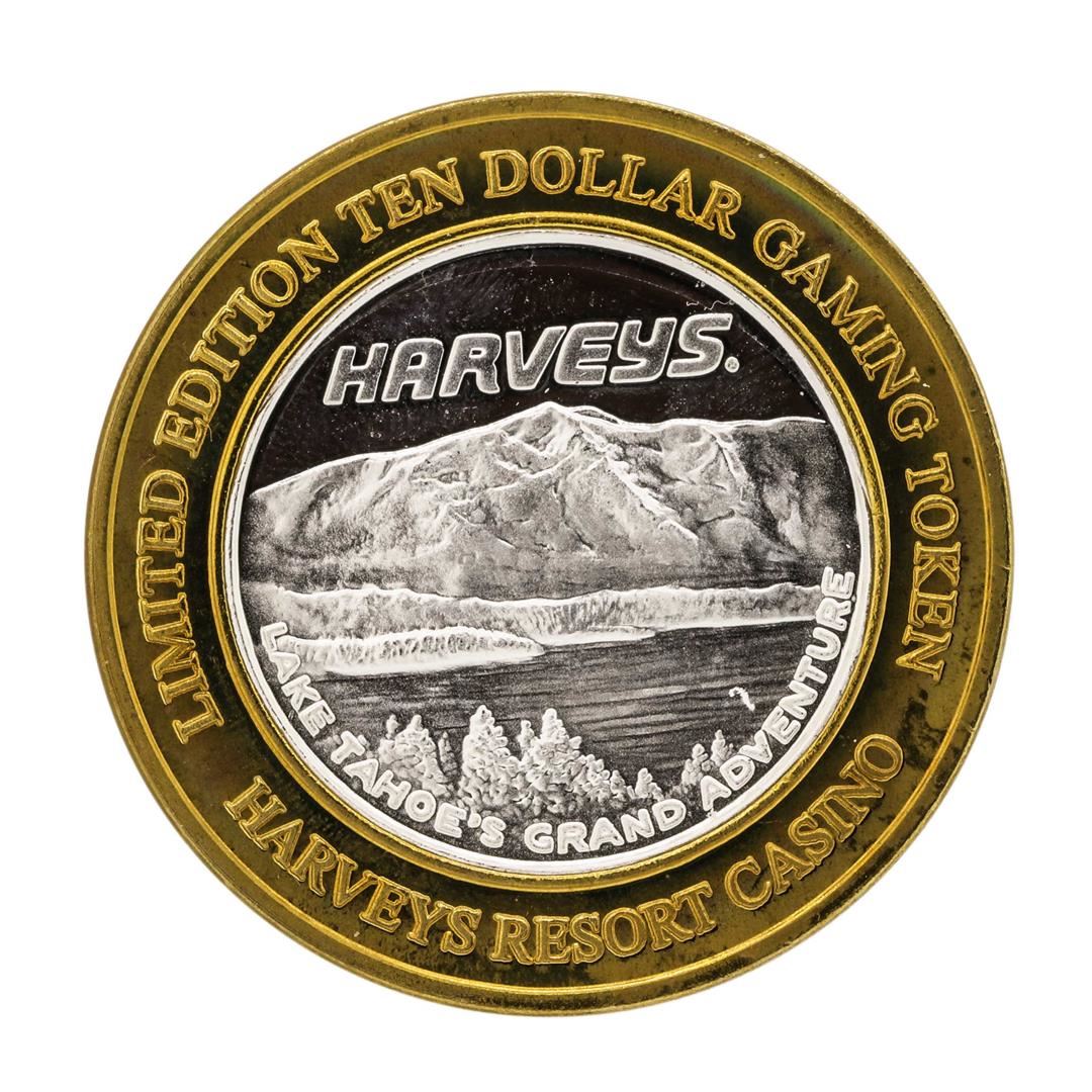 One .999 Silver Harveys Lake Tahoe, Nevada $10 Casino Limited Edition Gaming Token.