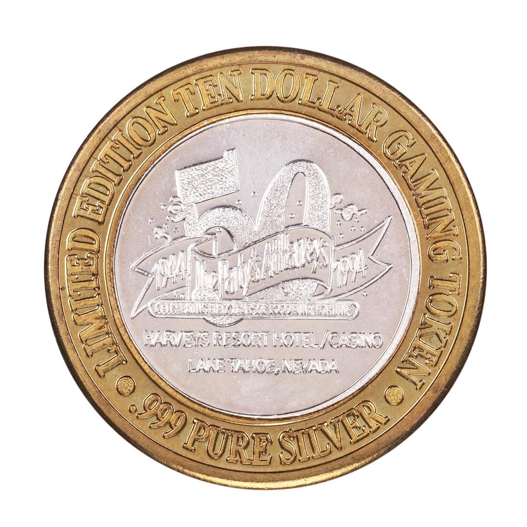 One .999 Silver Harveys Lake Tahoe, Nevada $10 Casino Limited Edition Gaming Token.