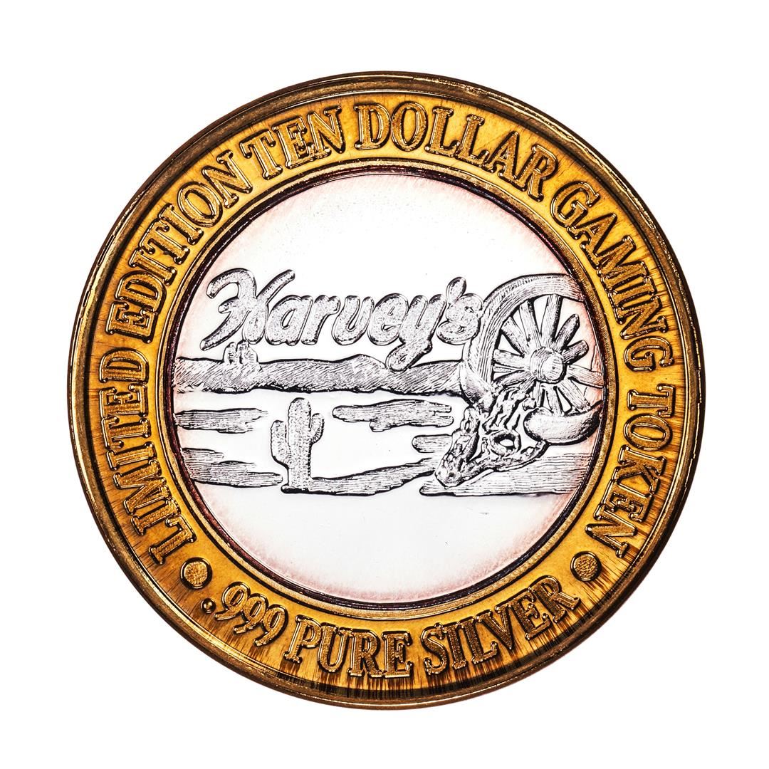 One .999 Silver Harveys Lake Tahoe, Nevada $10 Casino Limited Edition Gaming Token.