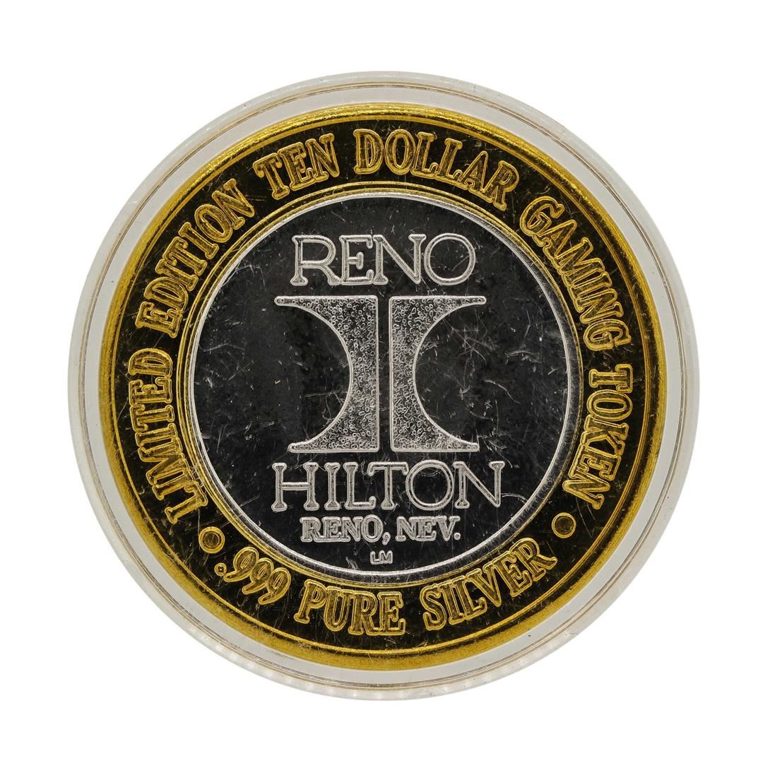 One .999 Silver Hilton Reno, Nevada $10 Casino Limited Edition Gaming Token.