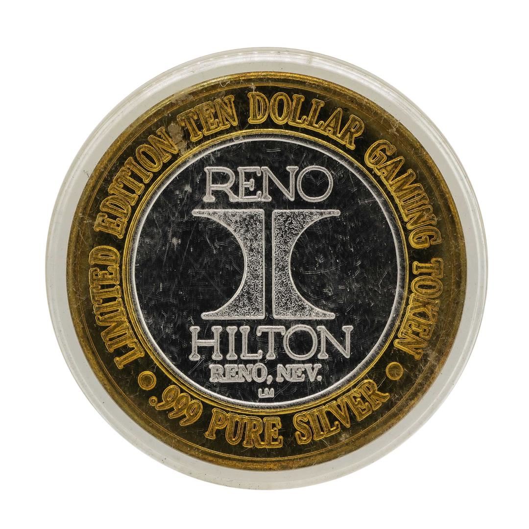 One .999 Silver Hilton Reno, Nevada $10 Casino Limited Edition Gaming Token.