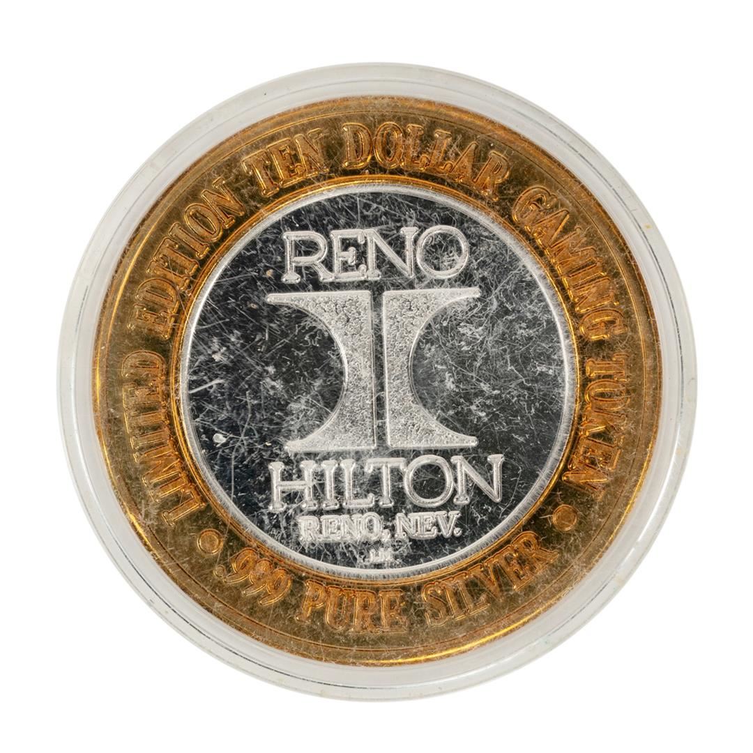 One .999 Silver Hilton Reno, Nevada $10 Casino Limited Edition Gaming Token.