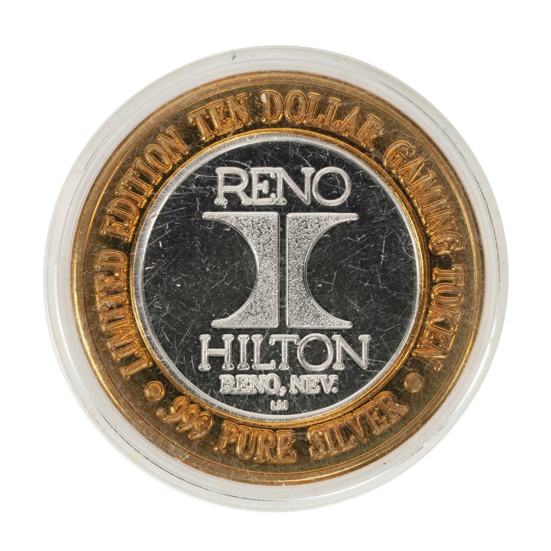 One .999 Silver Hilton Reno, Nevada $10 Casino Limited Edition Gaming Token.
