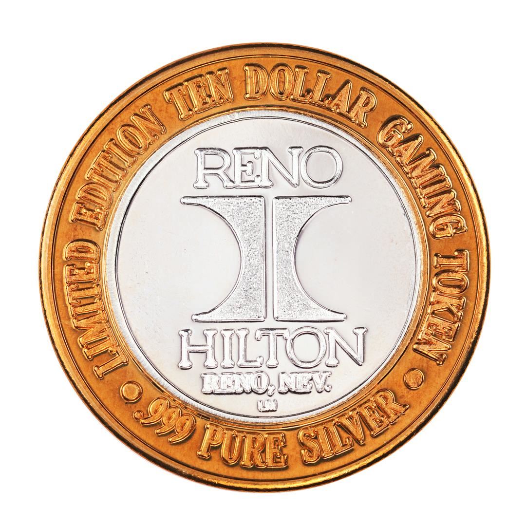 One .999 Silver Hilton Reno, Nevada $10 Casino Limited Edition Gaming Token.