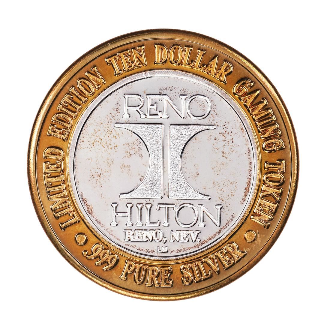 One .999 Silver Hilton Reno, Nevada $10 Casino Limited Edition Gaming Token.