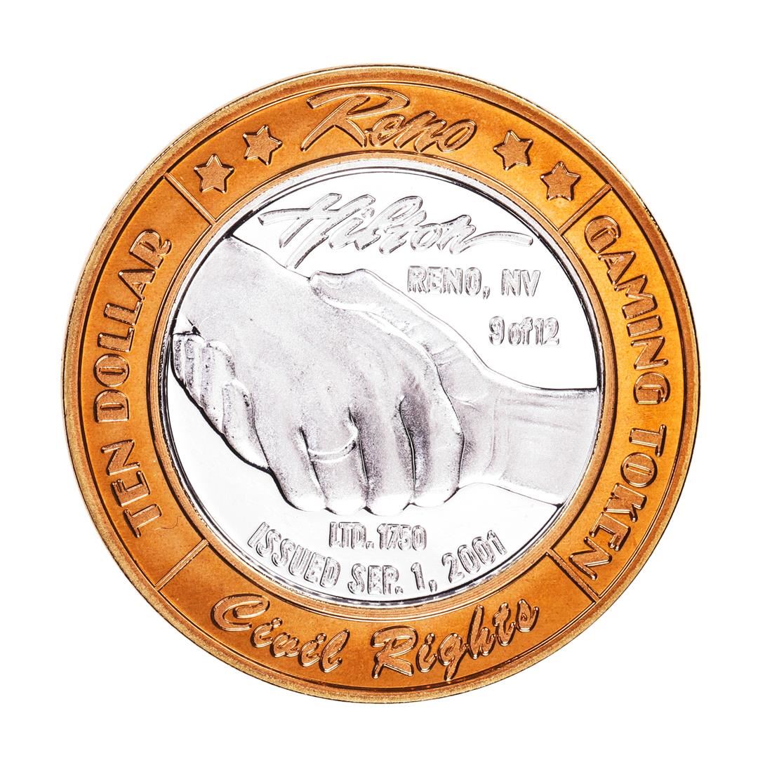 One .999 Silver Hilton Reno, Nevada $10 Casino Limited Edition Gaming Token.