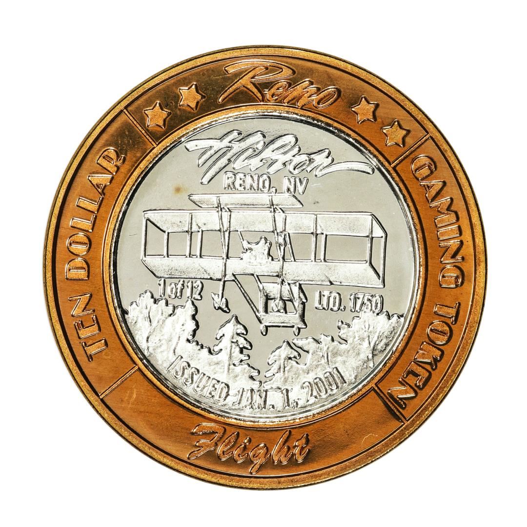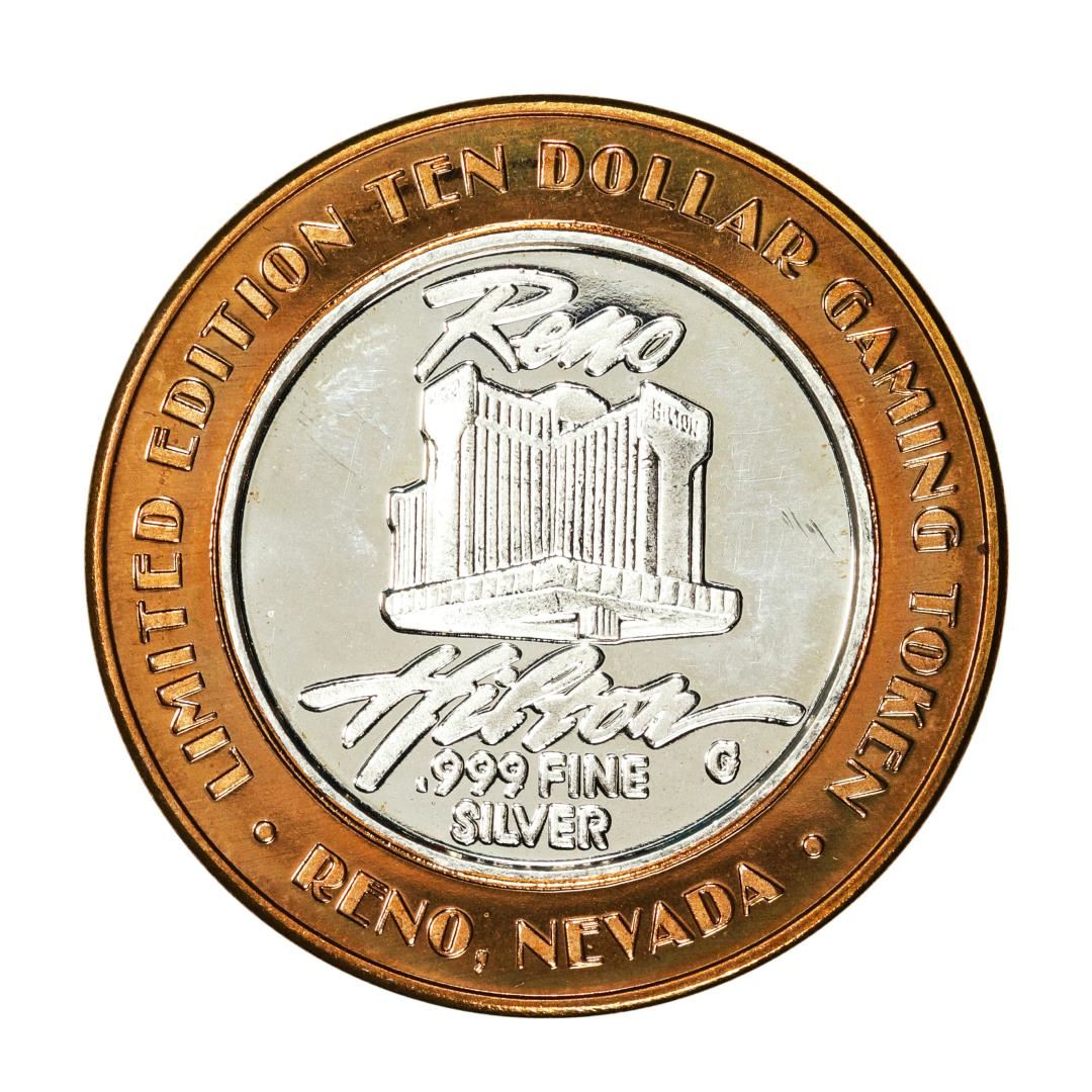 One .999 Silver Hilton Reno Nevada $10 Casino Limited Edition Gaming Token.
