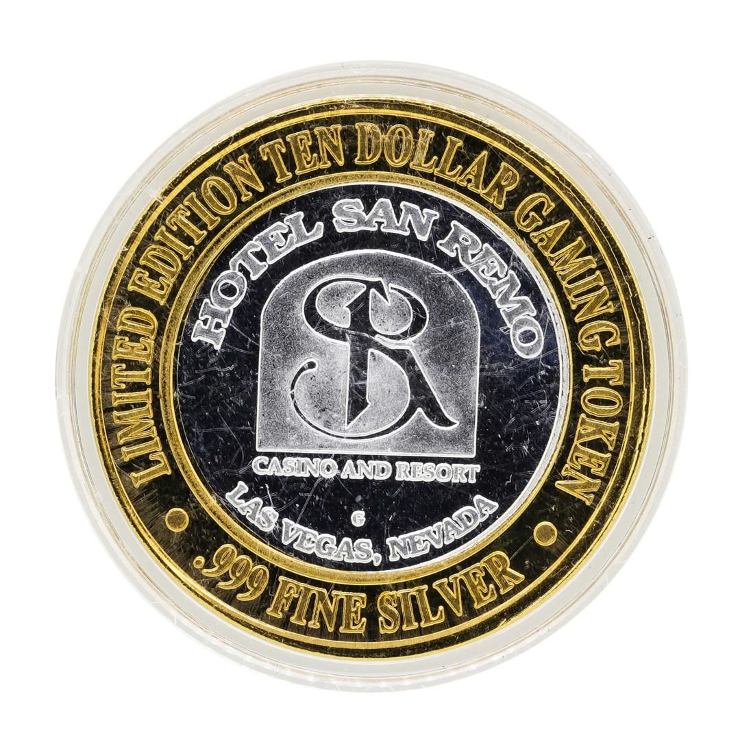 One .999 Silver Hotel San Remo Las Vegas, Nevada $10 Casino Gaming Token Limited Edition.