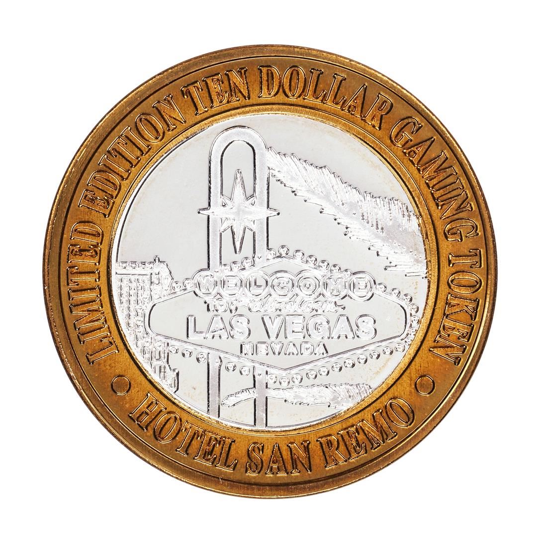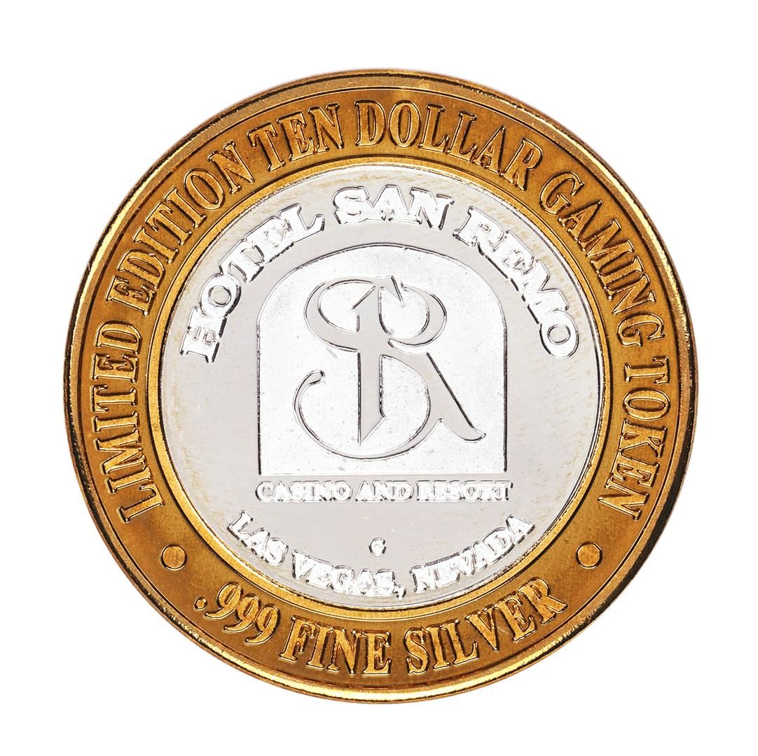 One .999 Silver Hotel San Remo Las Vegas, Nevada $10 Casino Limited Edition Gaming Token.