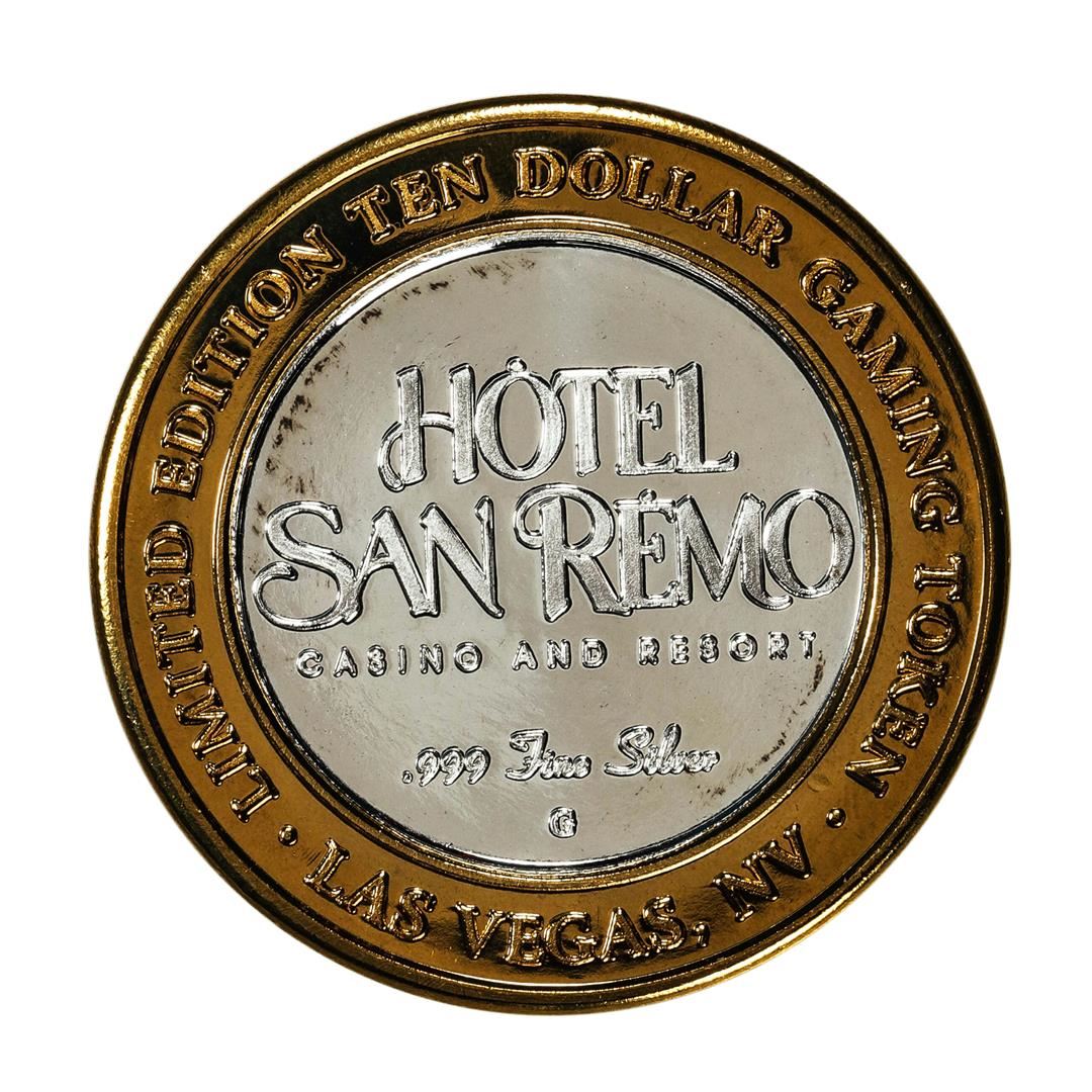 One .999 Silver Hotel San Remo Las Vegas, Nevada $10 Casino Limited Edition Gaming Token.