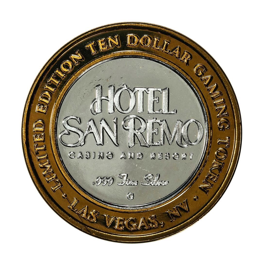 One .999 Silver Hotel San Remo Las Vegas, Nevada $10 Casino Limited Edition Gaming Token.