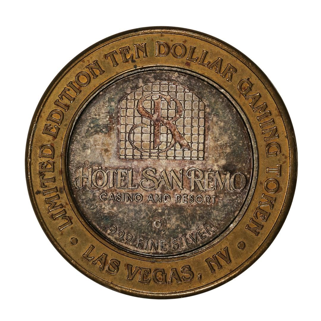 One .999 Silver Hotel San Remo Las Vegas, Nevada $10 Casino Limited Edition Gaming Token.