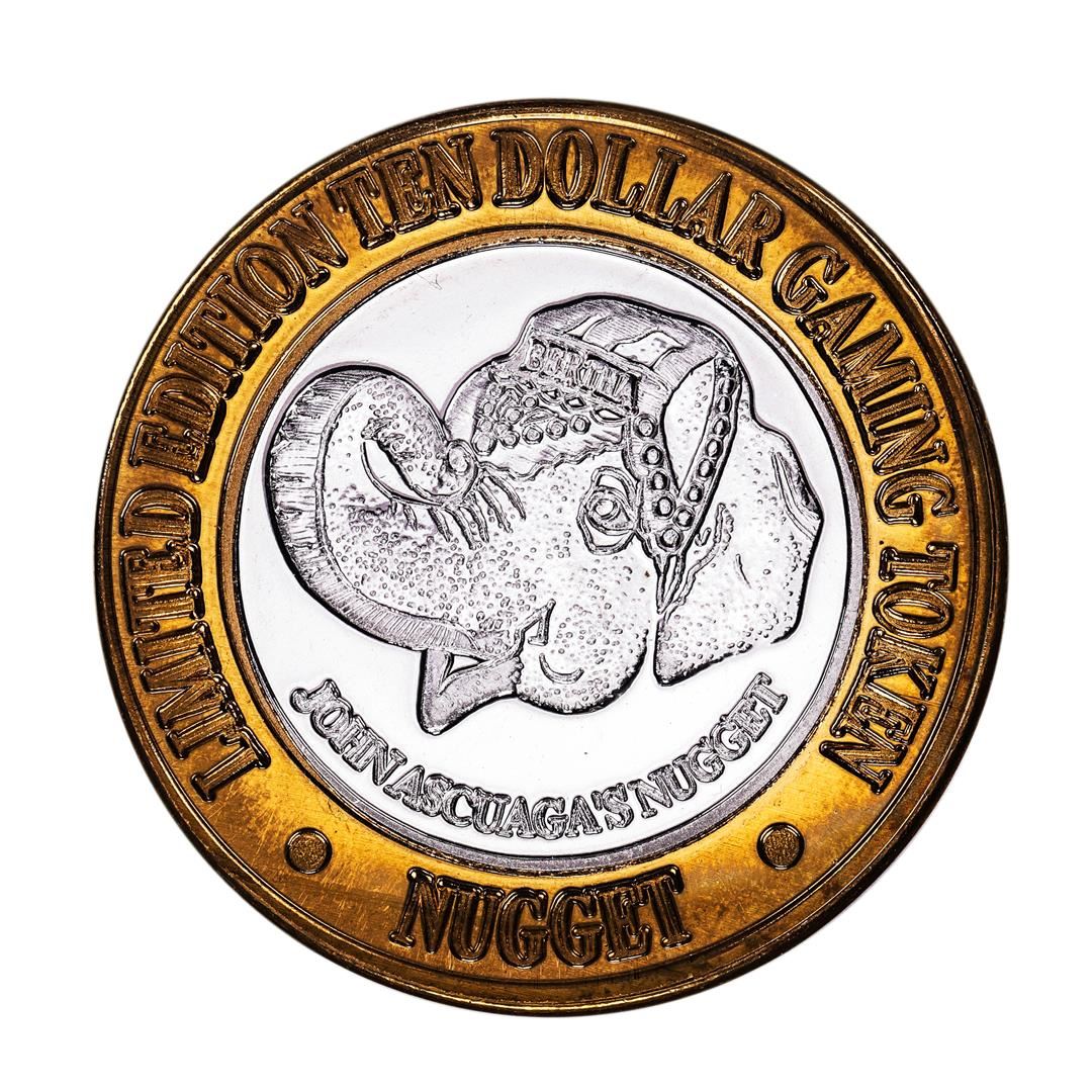 One .999 Silver John Ascuagas Nugget Sparks, NV $10 Casino Gaming Token Limited Edition.