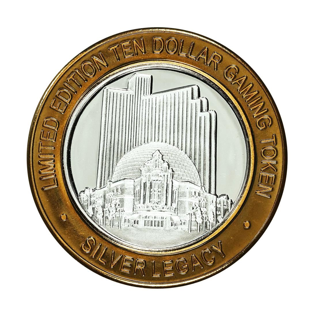 One .999 Silver Legacy Reno, Nevada $10 Casino Limited Edition Gaming Token.