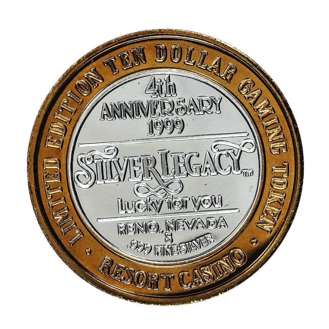 One .999 Silver Legacy Reno, Nevada $10 Casino Limited Edition Gaming Token.