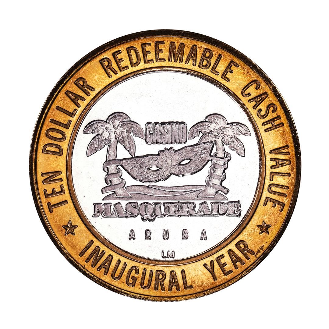 One .999 Silver Masquerade Casino Aruba $10 Casino Limited Edition Gaming Token.