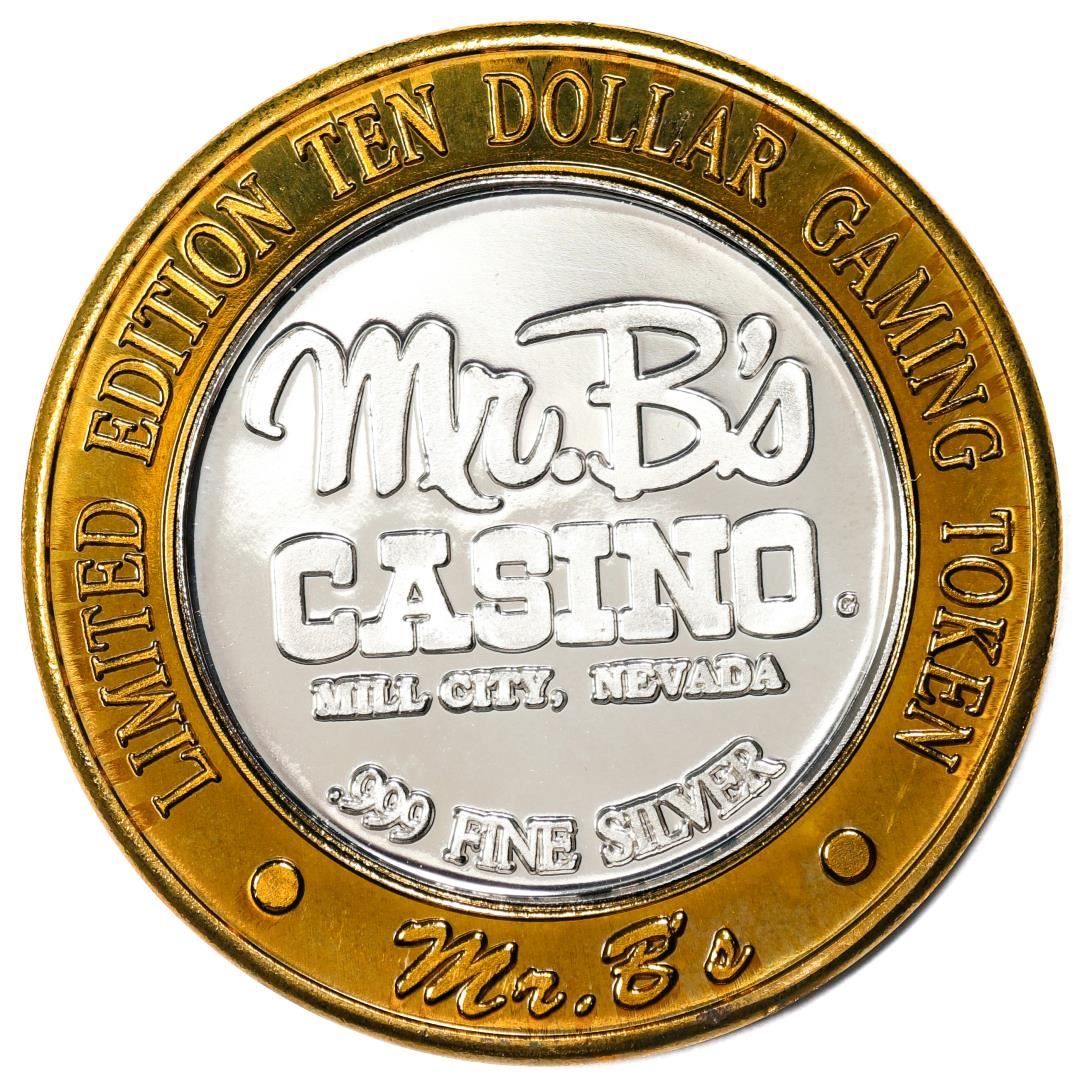 One .999 Silver Mr. B's Casino Mill City, Nevada $10 Casino Limited Edition Gaming Token.