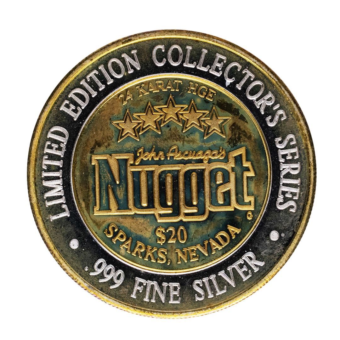 .999 Silver Nugget Sparks, Nevada $20 Casino Limited Edition Gaming Token