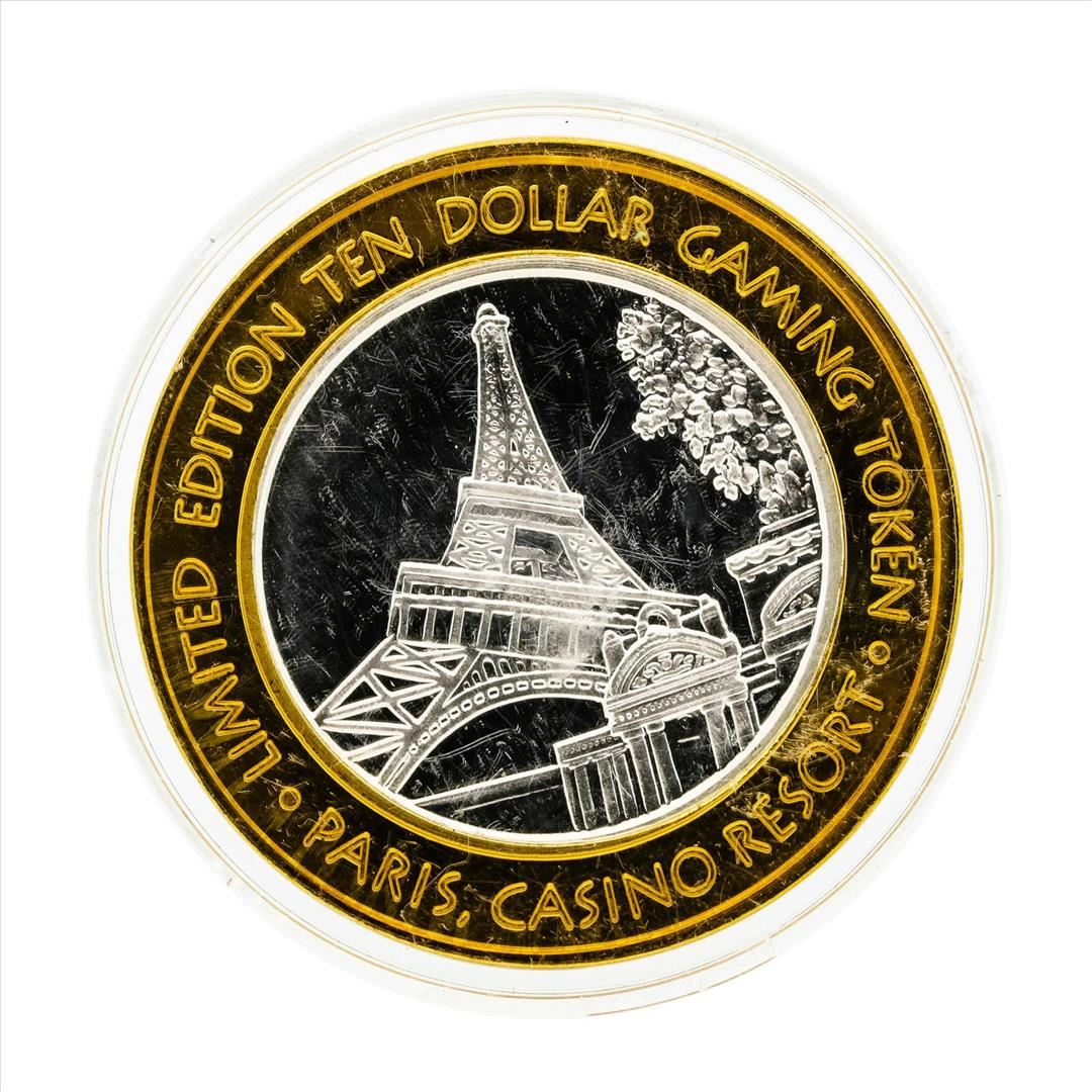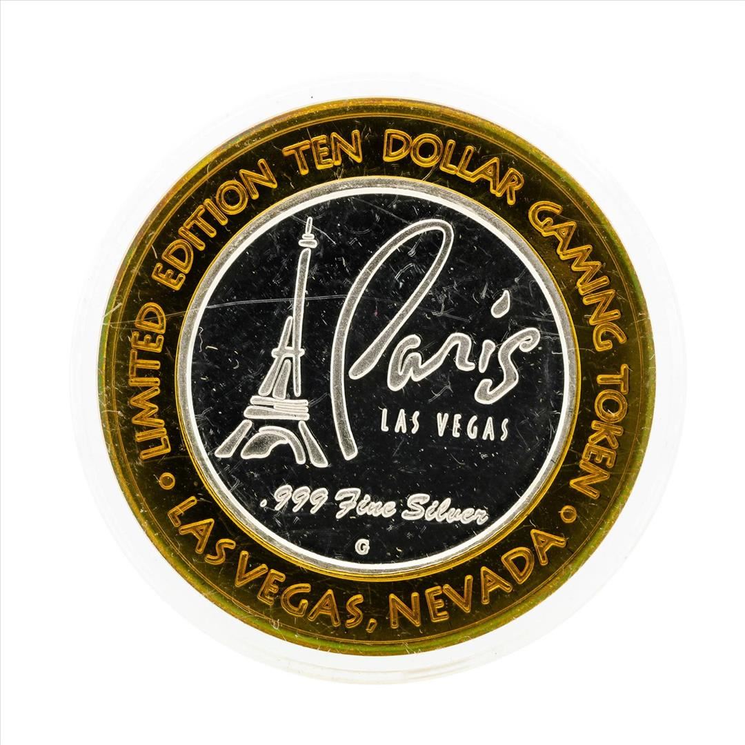 One .999 Silver Paris Las Vegas $10 Casino Gaming Token Limited Edition.
