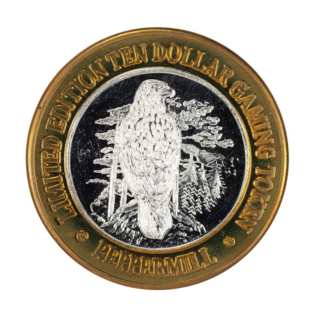 One .999 Silver Peppermill Hotel Casino Reno $10 Casino Gaming Token Limited Edition.